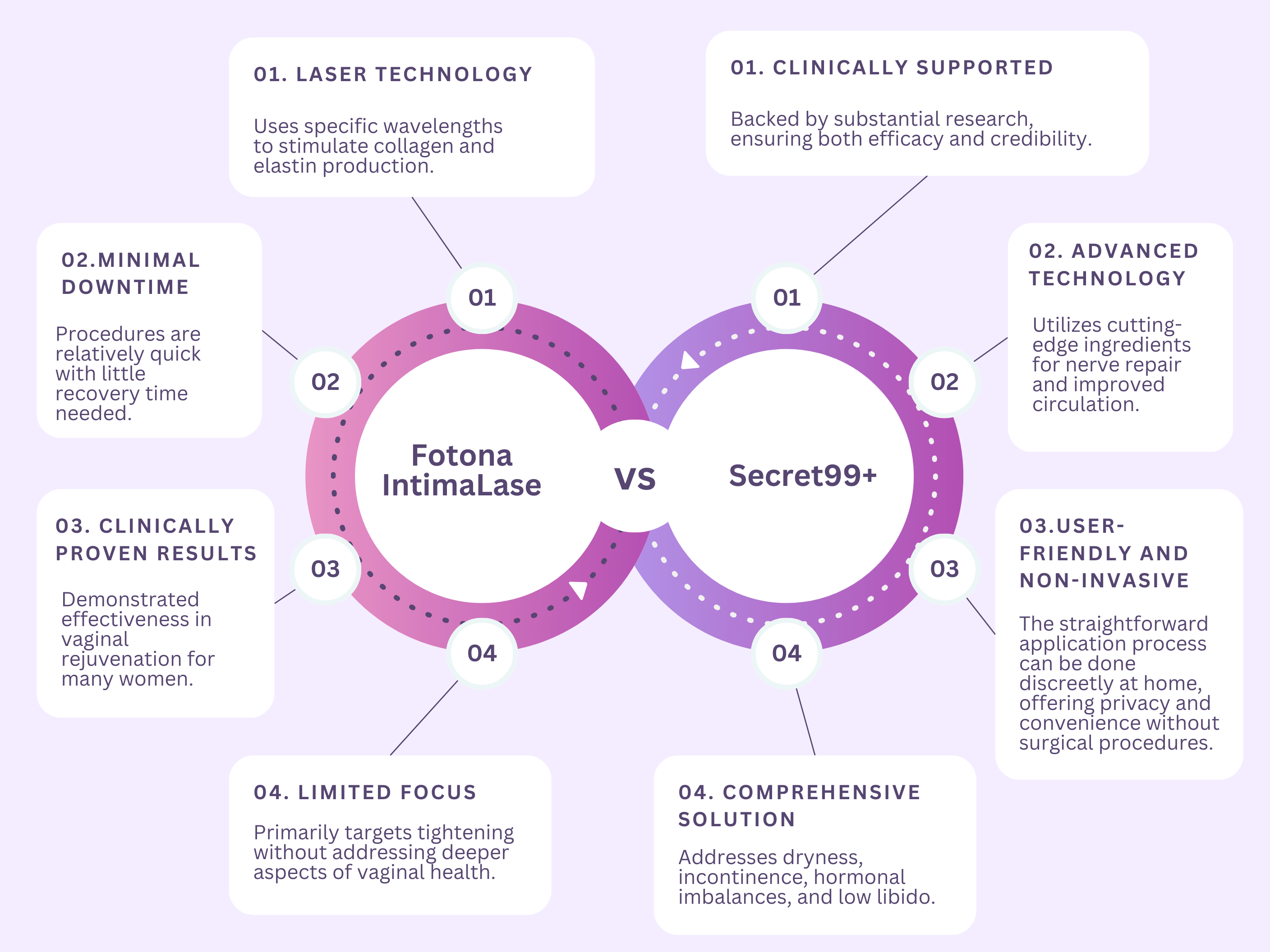 For a comprehensive approach to vaginal rejuvenation, Secret99+ Nano Gel stands out as the superior choice. By addressing the root causes of vaginal health issues and promoting cellular repair, Secret99+ provides a multifaceted solution that goes beyond mere tightening.