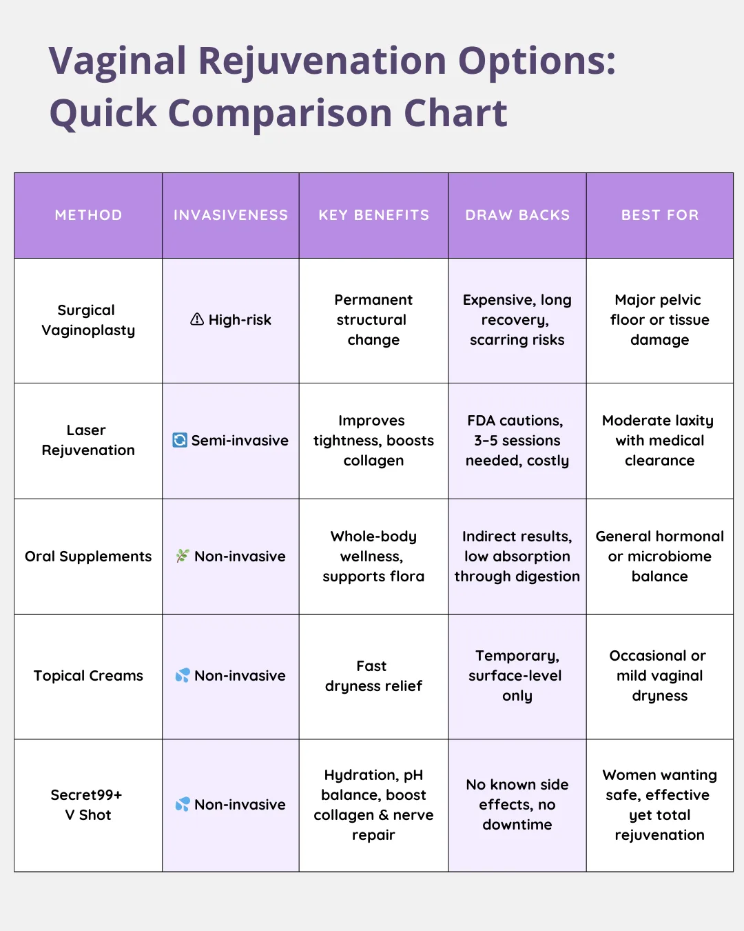 Vaginal Rejuvenation Options: Quick Comparison Chart